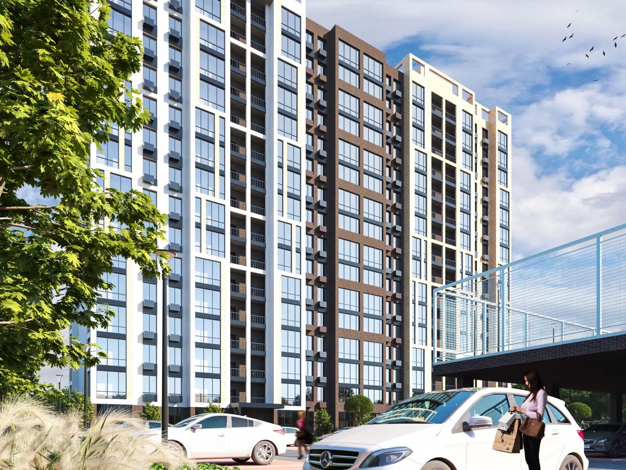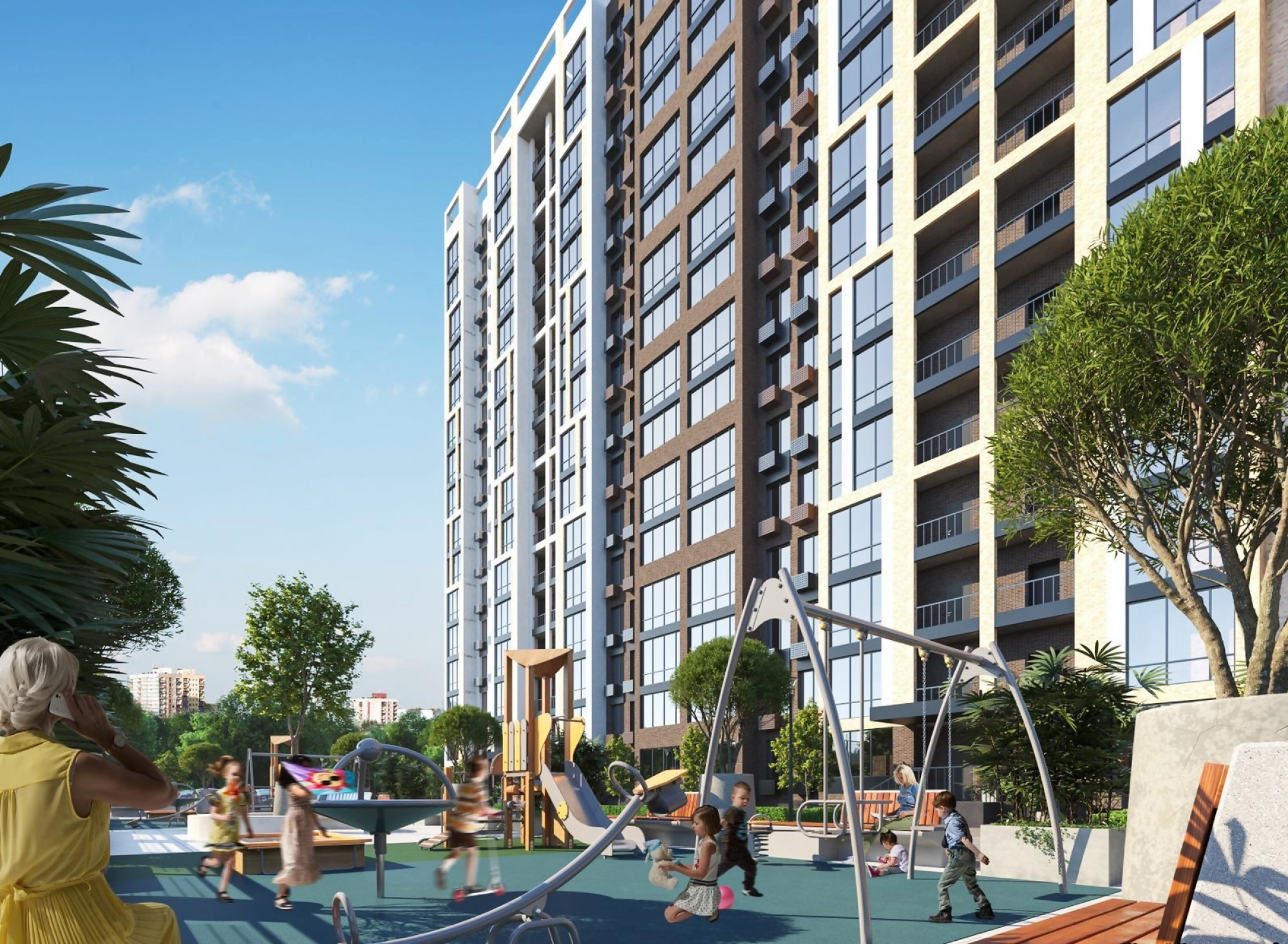 транспортная развязка, магазины, места отдыха и развлечений, парковые зоны.